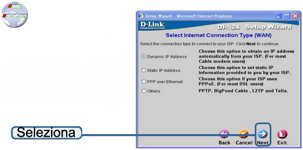 Configurazione del D-Link DI-524 Router wireless AirPlus G: Setup Wizard (configurazione tramite interfaccia web)