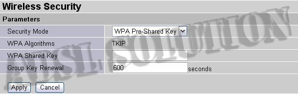 WPA Pre Shared Key: abilita il nuovo standard di crittografia WPA ossia la scelta consigliata da Adsl Solution Staff