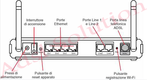 In questa figura è spiegato il significato di tutte le porte presenti su retro dell modem Alice Gate VoIP 2 Plus Wi-Fi: