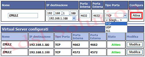 emule tcp 192.168.1.100 TCP 4662 4662 Attivo