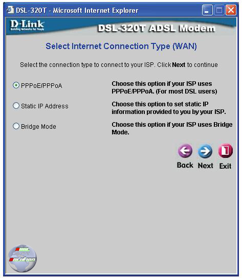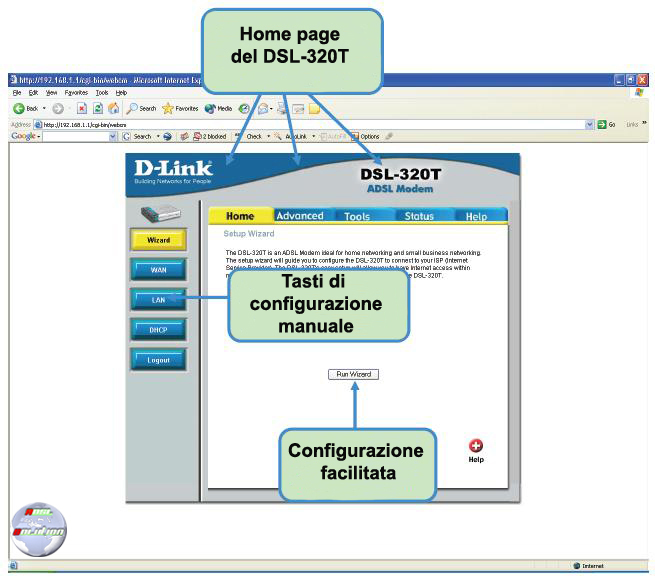 Dopo il login si aprirà la Home page del D-Link DSL-320T dalla quale è possibile scegliere, sul lato sinistro, quale configurazione eseguire;