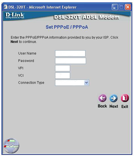 User e Password di default del D-Link DSL-320T (l'utente può modificare la password).