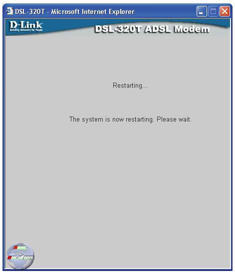 La configurazione del D-Link DSL-320T è terminata; un click su restart per il riavvio del modem è necessario per salvare la configurazione.