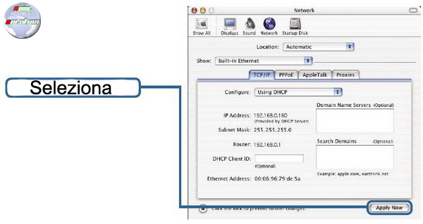 Selezionare "Ottieni un indirizzo IP automaticamente"