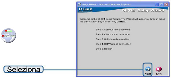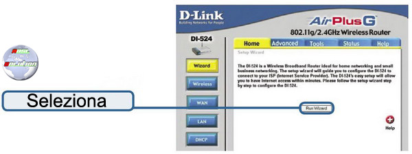 Configurazione del D-Link DI-524 Router wireless AirPlus G: Setup Wizard (configurazione tramite interfaccia web)