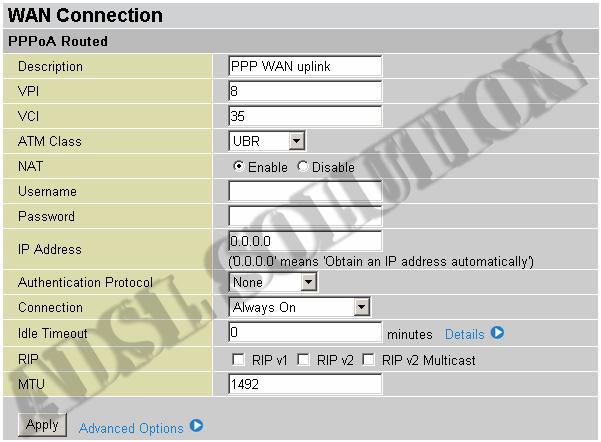 A questo punto vi si presenterà la schermata seguente in cui inserire i parametri di configurazione forniti dal vostro ISP (Internet Service Provider)