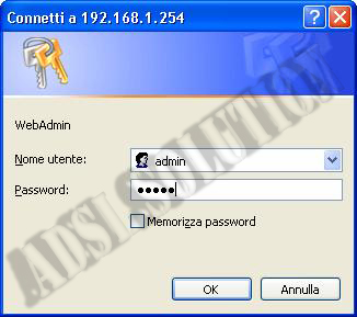 Digitate nella barra degli indirizzi l'indirizzo IP del Digicom Michelangelo Office Pro V: 192.168.1.254