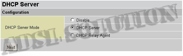Il menù della sezione DHCP Server Mode permette di impostare i parametri relativi al servizio DHCP secondo le scelte seguenti: