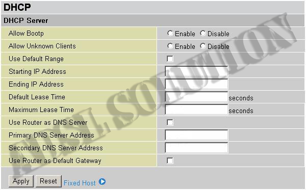 Allow Unknown Client: se abilitato assegna un indirizzo IP a tutti i client che ne fanno richiesta ma se disabilitato solo i client inseriti in Fixed Host (vedi sotto) potranno ricevere un indirizzo IP.