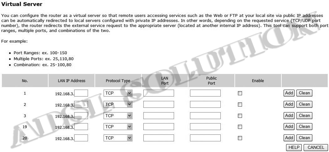 Ora dobbiamo compilare i cambi relativi a LAN IP Address, Protocol Type, LAN Port e Public Port così come richiesto dall'applicazione per la