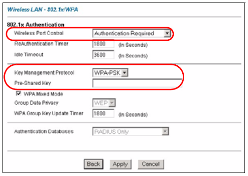 Dal menù a tendina selezionare la voce Authentication Required e successivamente la chiave di protezione che abbiamo scelto