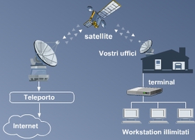 Questo tipo di connessione sfrutta l'utilizzo di un modem satellitare e un'antenna parabolica puntata su un satellite geostazionario.