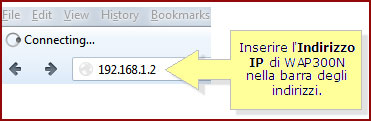 Estendere la nostra rete wireless o wi-fi non è mai stato così facile grazie ai nuovi Range Extender presenti in commercio. Oggi parliamo del Linksys WAP300 e vi spiegheremo come configurarlo in modalità Range Extender. Iniziamo con il collegare il Linksys WAP300N alla corrette elettrica, successivamente dal nostro PC rileviamo la rete del nostro Extender e connettiamoci. A qusto punto apriamo un Browser per la navigazione e digitiamo nella barra degli indirizzi : 192.168.1.2 come evidenziato nell'immagine sottostante.