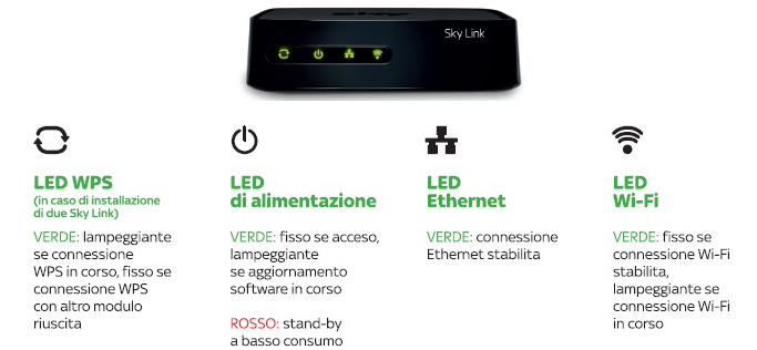 Conoscendo quelle che sono le problematiche derivanti da un collegamento alla linea dati in ambiente domestico e le variabili dovute al hardware in nostro possesso (il modem è wireless?) SKY, da sempre attenta alle esigenze dei propri clienti e all’ottimizzazione dei suoi servizi, ha ampliato la sua offerta con dei dispositivi WI-FI appositamente studiati e certificati per il funzionamento con il suo decoder denominati SKY LINK.