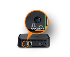 - Collega il primo Sky Link al router tramite cavo ethernet e alla presa di corrente. Posiziona il pulsante AP/CLIENT presente dietro lo Sky Link su AP